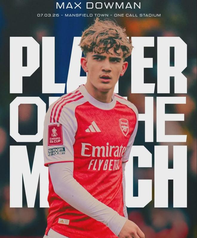官方:道曼被阿森纳官方票选为了上场足总杯比赛的全场最佳球员!